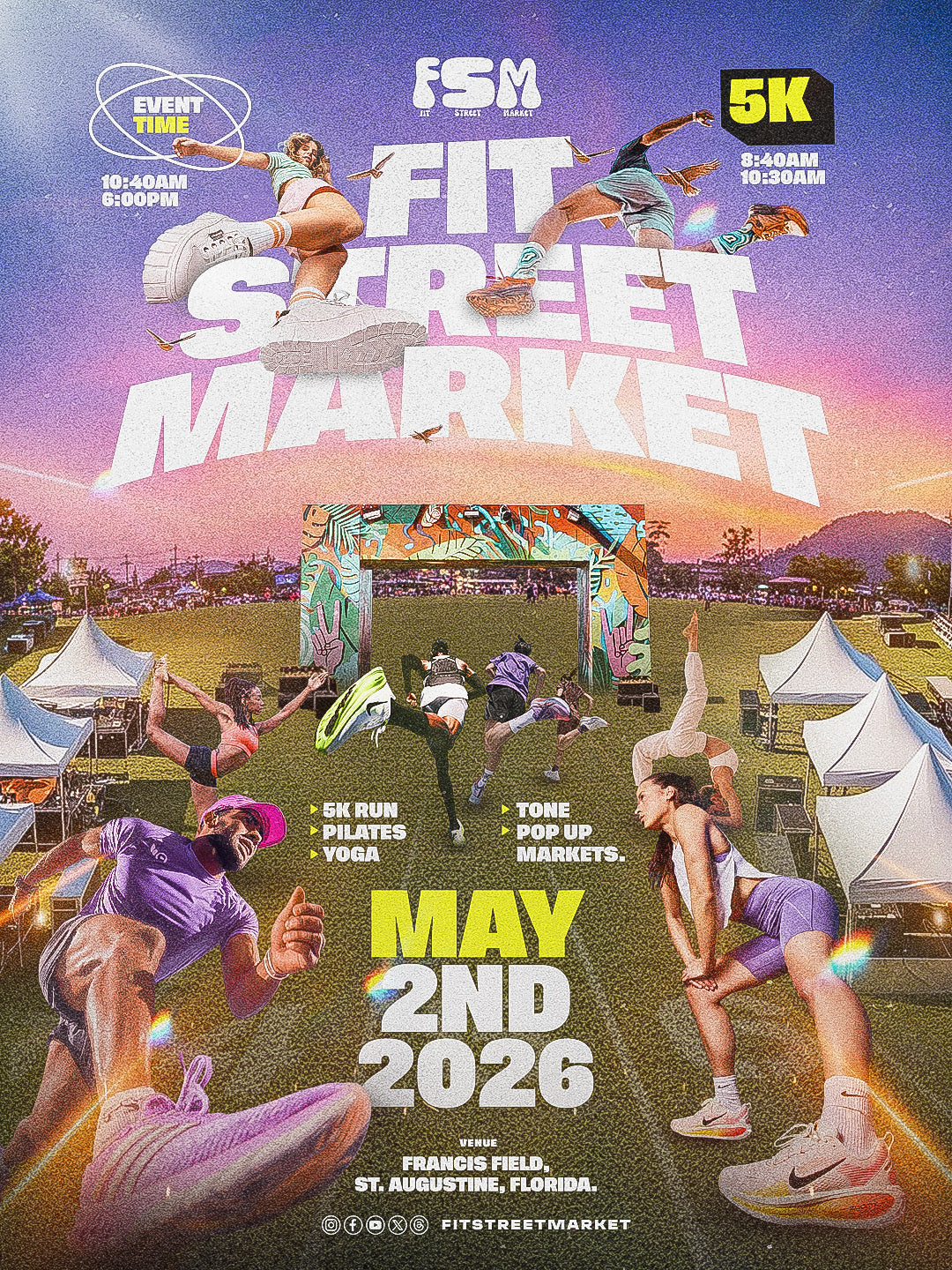 FIT STREET MARKET is taking over Seawalk Pavilion in Jacksonville Beach for a high-energy day of movement, music, and community on the coast. Start strong with our beachside 5K, featuring ocean views, salty air, and big finish-line energy for every pace. Keep the vibes going with FSM FIT CLASS sessions on the sand, including yoga, pilates, and tone to stretch, strengthen, and recharge. All around the pavilion, vendors from local businesses with amazing goods, bringing the community together to shop, support, and discover new favorites.